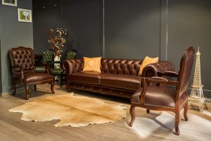 Vintage Hakiki Deri Kahverengi Koltuk Takımı