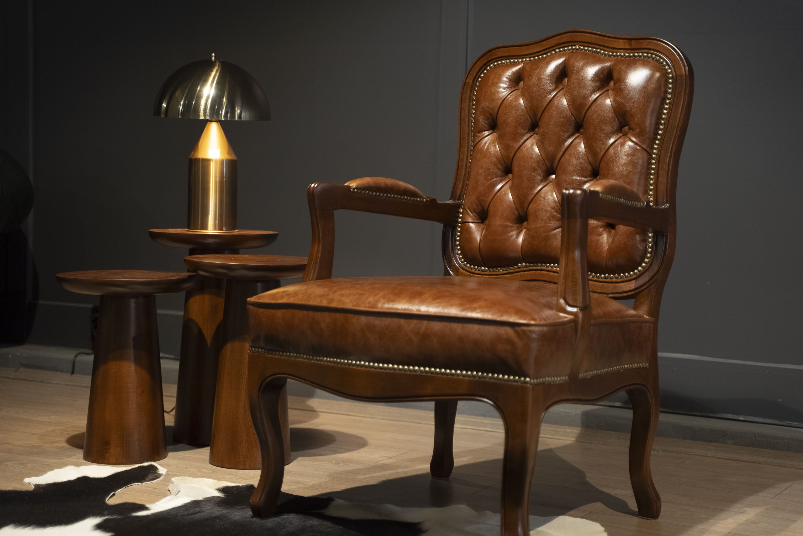 Vintage Gerçek Deri Kahverengi Berjer Koltuk, zarif oymalı iskeleti ve yüksek konforu ile her ortamda göz alıcı bir şıklık sunar. %100 doğal İtalyan hakiki deri kullanılarak üretilen bu özel berjer, estetik ve dayanıklılığı bir arada sunar.